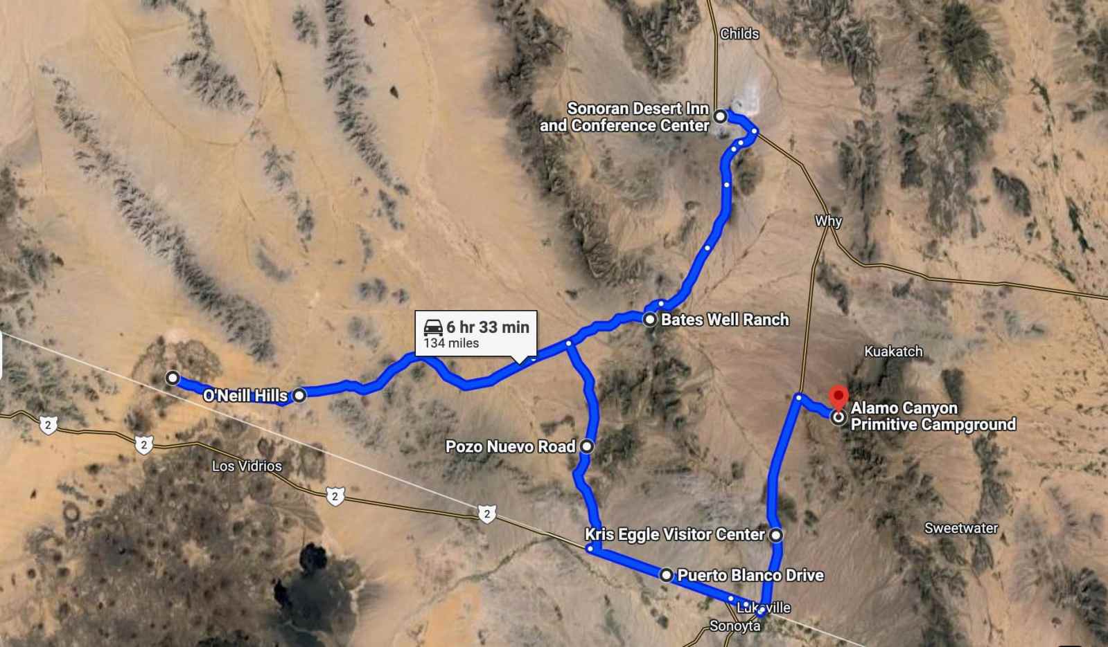 In 1975 Cabeza Prieta officially became part of the US Fish & Wildlife Service National Wildlife Refuge system. And 15 years later, 93% of the NWR became protected as wilderness under the Arizona Desert Wilderness Act. Because almost all of the refuge is designated wilderness, there are few roads for motorize vehicle travel. The most well known road is El Camino Del Diablo, which is a two-way road traversing the refuge from east to west. The historic road was a foot path long before vehicles existed and today requires high clearance and 4-wheel drive. To access the road from the east entrance you must travel through Organ Pipe Cactus National Monument on Bates Well Road. We stopped at the Bates Well to see the old homestead and make breakfast.