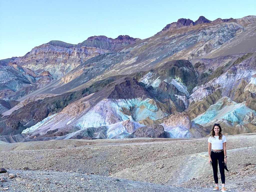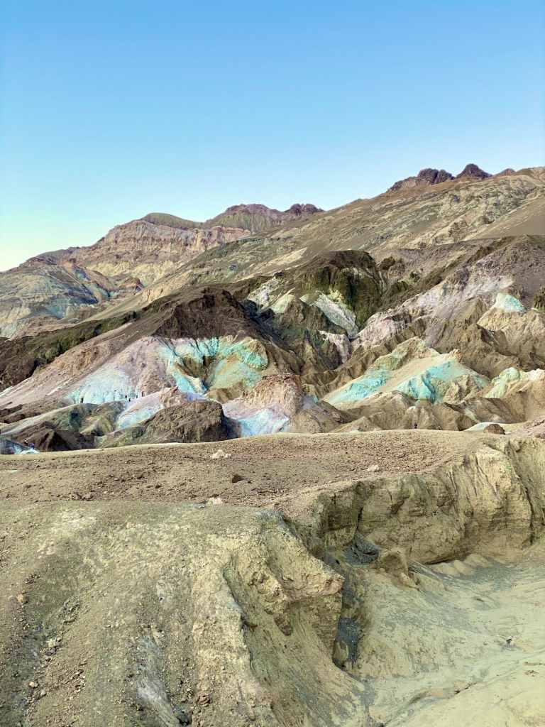 After a fun drive farther down the one way road with twists, turns and dips, you’ll come across the popular Second viewpoint. This is the popular Instagram spot where you can see the beautiful palette of colors. In the interest of time, we stopped on the side of the road by other cars and took a path out to get our own beautiful picture! We could have continued to the designated parking spots. From that viewpoint, there is a trail out to the rocks with great viewpoints and photo opportunities. We read that Artists palette is best in the afternoon light as it is west facing. If you can, get there within the golden hour (hour before sunset) for soft lighting and great pictures. We were here around 4:15pm and sunset was around 4:30pm.