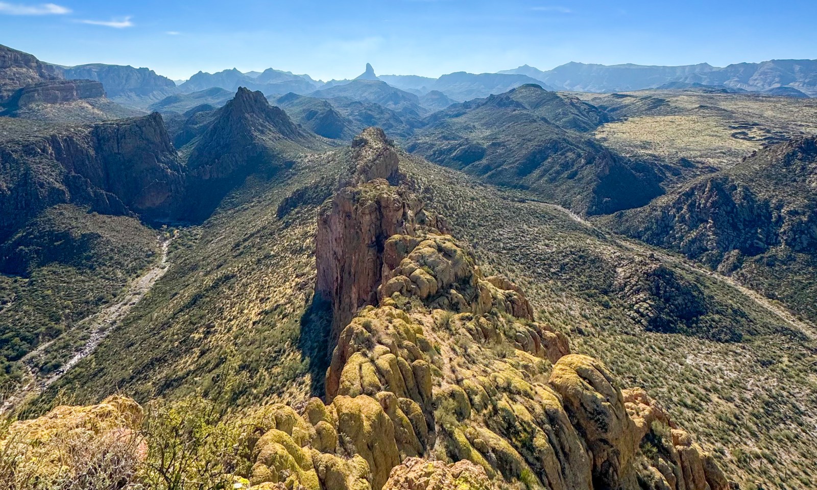 The Superstition Ridgeline Trail in Tonto National Forest is an unofficial but popular 11.25-mile hike with challenging sections and stunning views. It’s mostly exposed, so be prepared for little shade and some tricky scrambles. Don’t forget your hiking poles for the descent and watch out for wildlife!