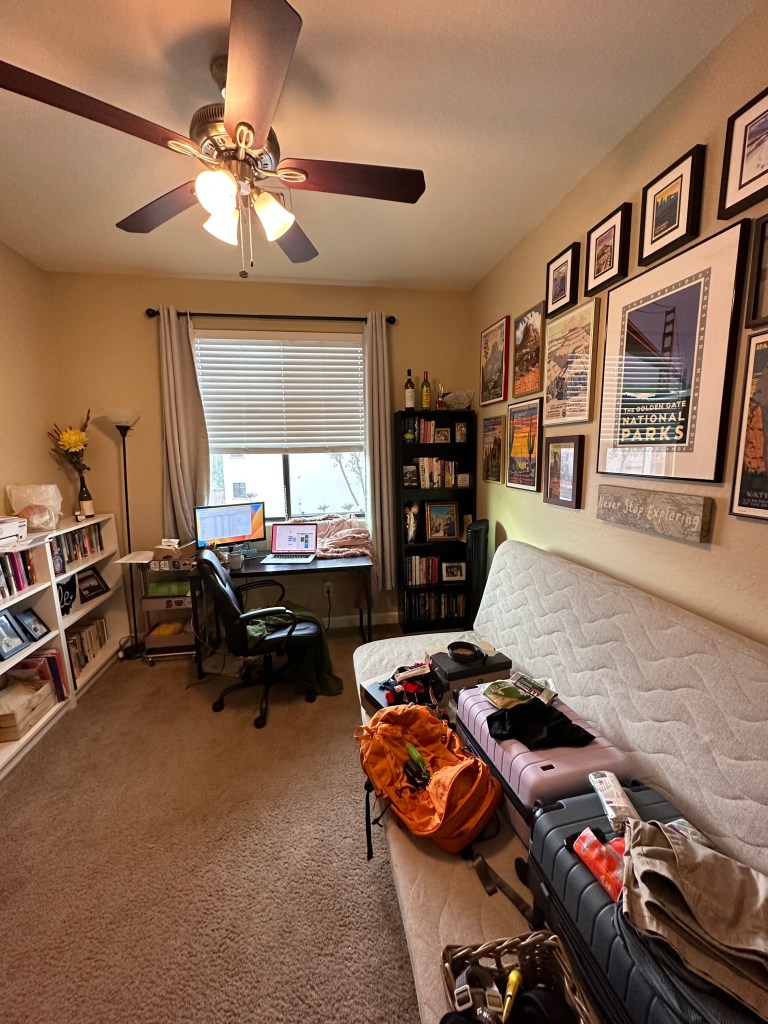 This is Lauren’s office where she works. Working from home allows us to be able to pack for our trips during breaks in our day!