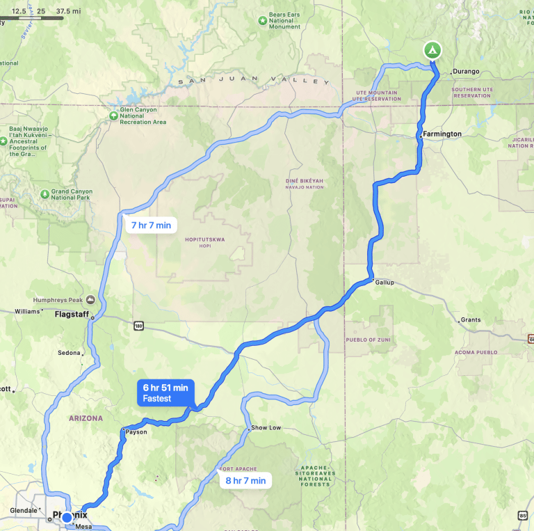 In true weekend warrior spirit, we used the Memorial Day three-day weekend to road trip from Phoenix to Black Canyon of the Gunnison National Park. The drive is nearly 10 hours without stops, so we broke it up by camping near Durango, Colorado. This gave us time to rest, explore a new area, and still make it to the park feeling ready for adventure.