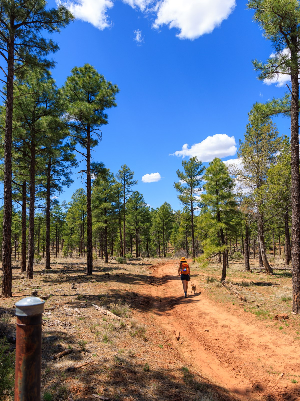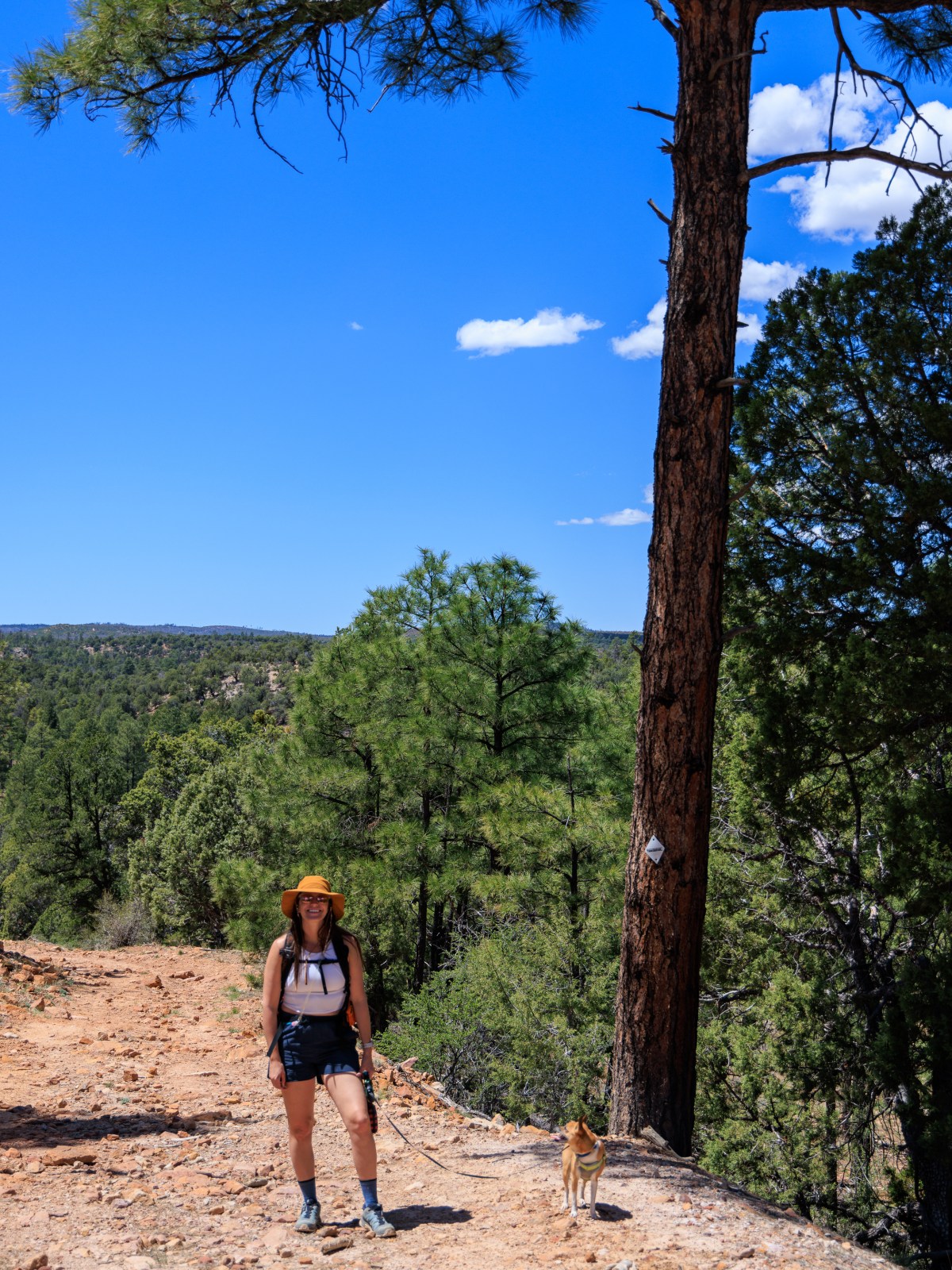 There are a lot of hiking trails nearby! We hiked a small section of Los Caballos only a few minutes from our campsite at Fool Hollow Lake Recreation Area. Overall, we hiked 3 miles out and back, but the full loop is over 14 miles. Show Low also has another lake called Show Low Lake. Pinetop-Lakeside is nearby as well with additional hiking and restaurants. If you’re curious what else there is to do in the area check out our Pinetop guide.