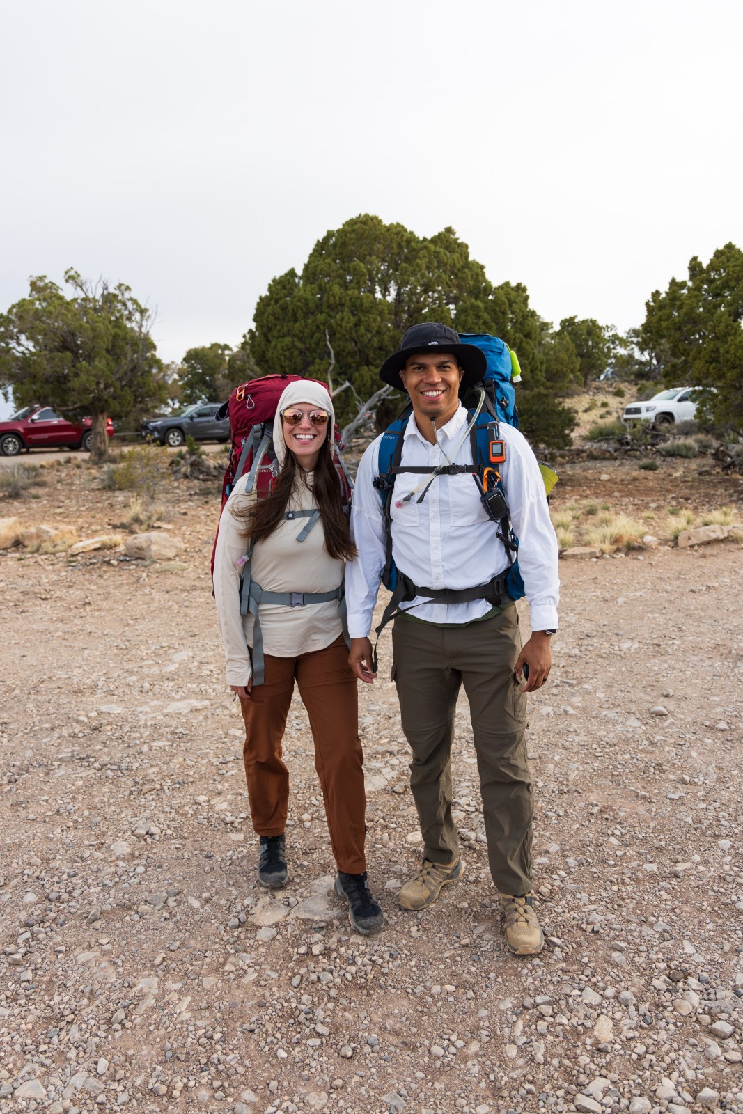 We (Owen & Lauren) have backpack camped before and done rim to rim, but we had not backpacked in the Grand Canyon. Owen has done Havasupai Falls. In our group was Owen’s cousin (Gunnar) who had never backpacked before and had never hiked below the rim, and his cousin’s boyfriend (Pat) who has backpacked before but had never been to the Grand Canyon before.