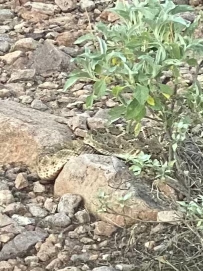 This area is home to a lot of rattle snakes! We saw a few on the road driving in and on trail we almost stepped on one. The snake is circled in the first photo and Owen’s phone fell out of his pocket as he jumped away after hearing the snake rattle. Rattle snakes are most active in the 80° F temperature range. They hunt when their prey is most active at dawn and dusk. And they like to thermal regulate their bodies in the shad under rocks or bushes to cool down, and on rocks and sunny locations to warm up.