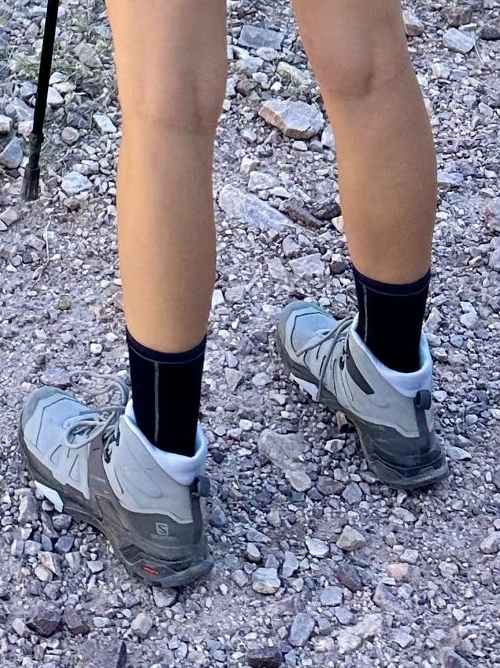 Lauren wore Salomon 4 mids for this hike. She wore these because she knew they were comfortable and wanted the ankle support. We’ve updated to most recent version available. Salomon.com
