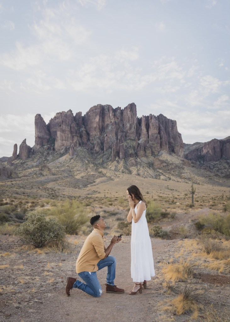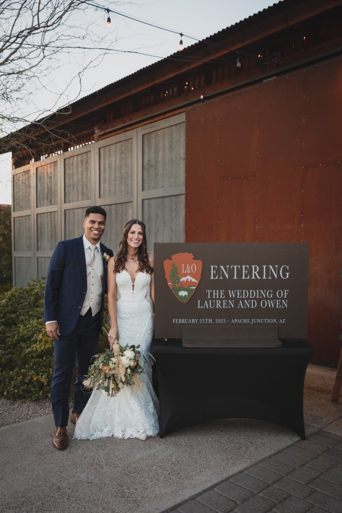 Owen surprised me with a fake photoshoot and proposed in April of 2021 in front of our favorite mountains. We got married in February 2023 in front of those same mountains. It was the outdoorsy wedding of our dreams!
