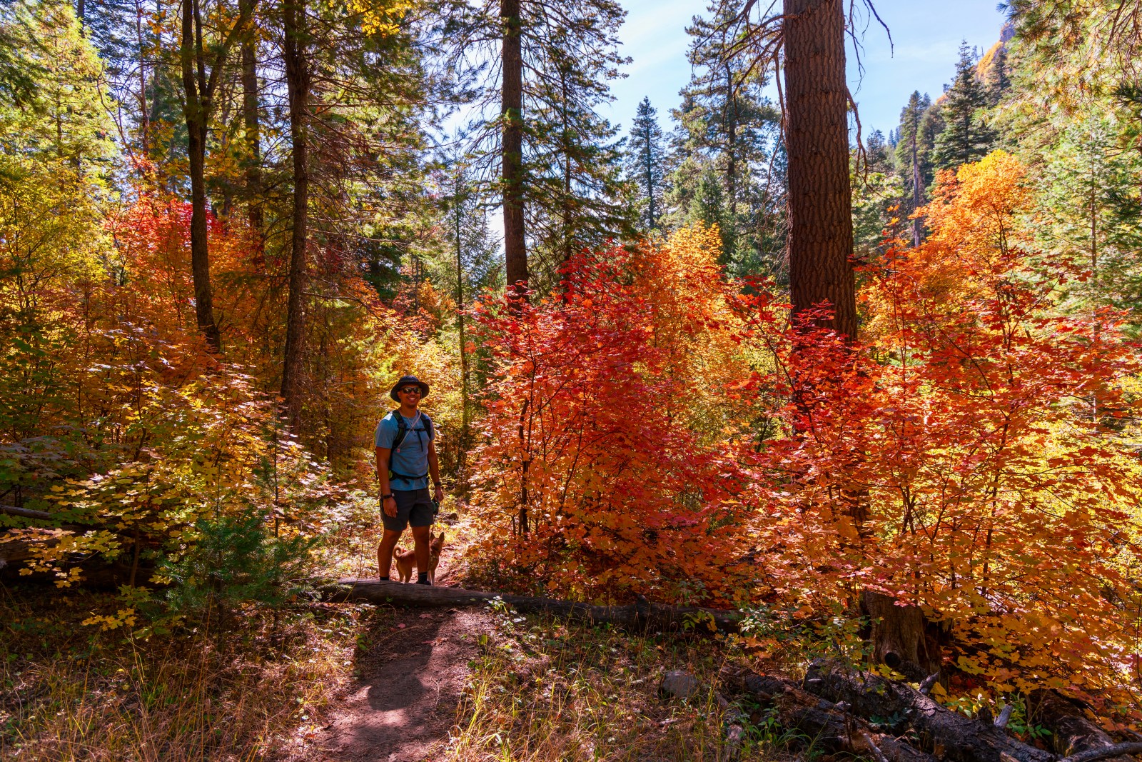 The trail follows the western wall of the canyon for a bit before eventually turning right near the top of the rim. As the trail stays along the canyon wall, it also gains a steeper elevation grade and when you think you’re getting to a flat part, it feels like a mirage because the trail keeps climbing. After we started to lose sight of the fall colors, about 2.8 miles from the trailhead, we decided to turn around. This was a rare decision for us not to finish. But in full transparency, Lauren has been dealing with patellar tendonitis in her knee and Owen was quite sore from the gym that week. However, Finnick was thriving and could have easily kept going.
