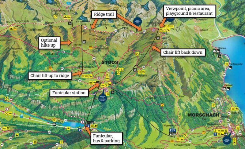 We walked to the Klingenstock chairlift and rode it up to the start of the Stoos Ridge hike.