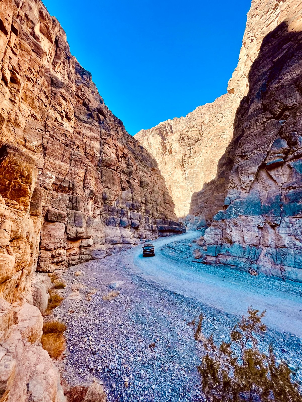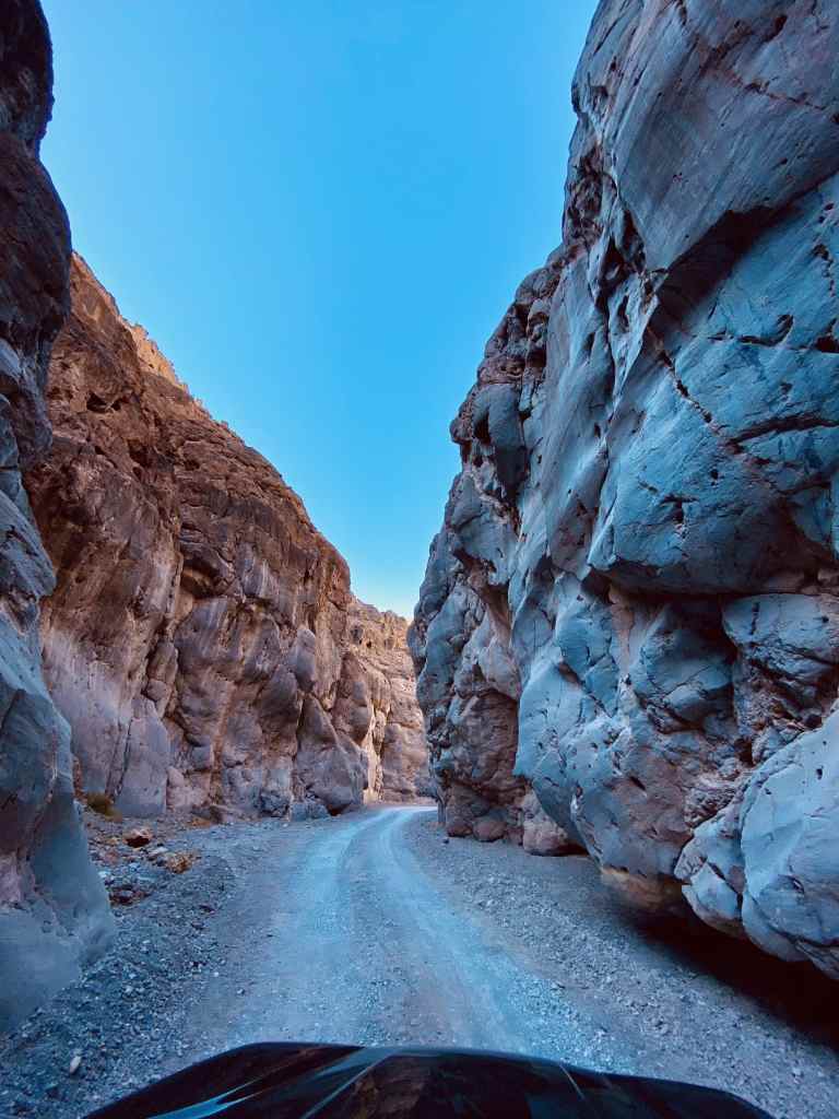 Continuing on, Titus Canyon is full of fun twists, blind corners, and looming cliffs that look like they’re watching your every turn. Grey rock and layers throughout out are so easy to see because they become so close! In fact within the final 1.5 miles, the Canyon is 20 ft wide at its narrowest point. As you get closer to the end, depending on the time of the year, you may see many hikers. Be careful and go slow! And overall, take your time to enjoy the journey.