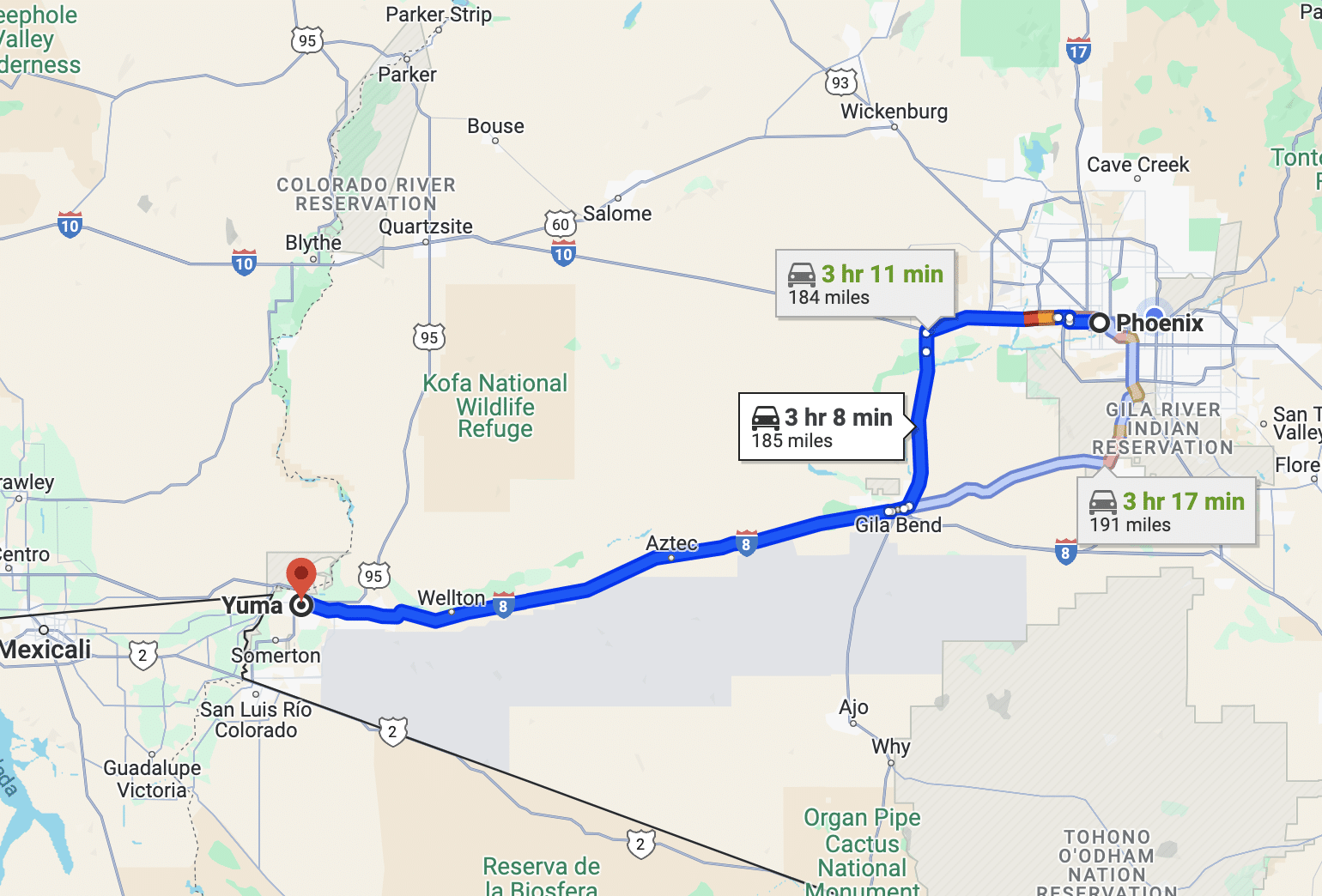 Yuma, Arizona is the sunniest place in the world! Are you surprised? Located in the southwestern corner of Arizona, Yuma is on the border of California and Mexico. From Phoenix it’s about 3 hours to get to Yuma and from Tucson it’s about 3.5 hours. In our opinion, Yuma is often overlooked, but there is so much to do and see in the area! And if you’re a history buff, Yuma has a lot to contribute. For example, Yuma was once the only southern crossing location of the Colorado River, Arizona’s first territorial prison was in Yuma, it’s location on the river played a critical role in moving supplies for merchants and the Army, and has been integral in feeding America with it’s fetile farm land and Colorado River water.