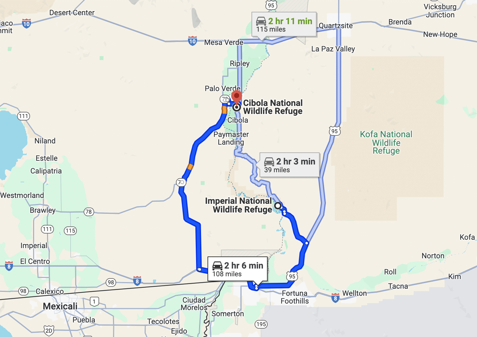 We took this route on the way back to Imperial NWR to get there before sunset.
